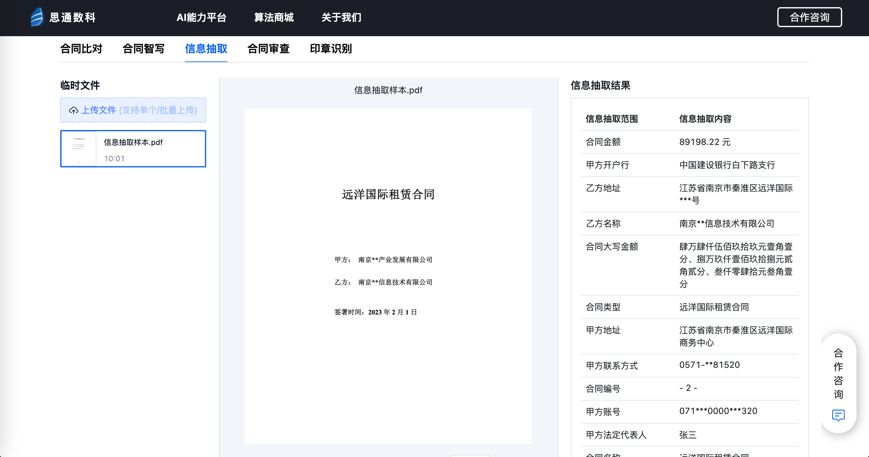 在券商投行进行企业IPO尽职调查过程中,企业需要提交大量的财务报表、历史沿革文件、法律合同等资料。这些文件涉及多个部门,往往存在信息分散、合规性复杂、数据量庞大等问题。思通数科的AI能力平台通过OCR文字识别技术、自然语言处理(NLP)以及基于深度学习的大模型,自动识别并提取文件中的关键信息。系统能够快速完成文件的分类、内容核验和合规性审查,有效减少了人工处理时间,降低了错误率。其语义分析与文本相似度计算功能确保各文件间的信息一致性,并能实时生成合规性风险报告,为IPO尽调团队提供全面支持。