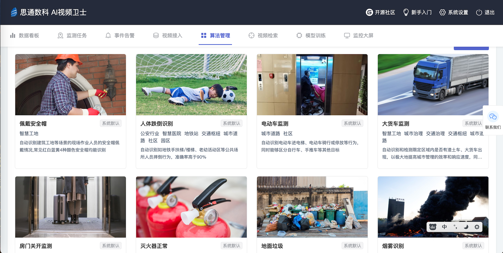 更多产品体验及相关信息,请访问思通数科官网算法商城的安全监控大模型。