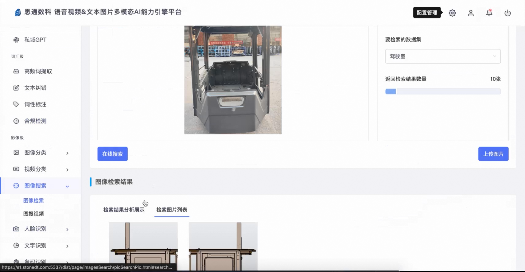 系统支持多视图自动生成,用户可在Web端自定义所需的JPEG图片数量(默认生成8张)。这些图片将自动导入以图搜图数据库,为后续的比对与检索提供数据支持。