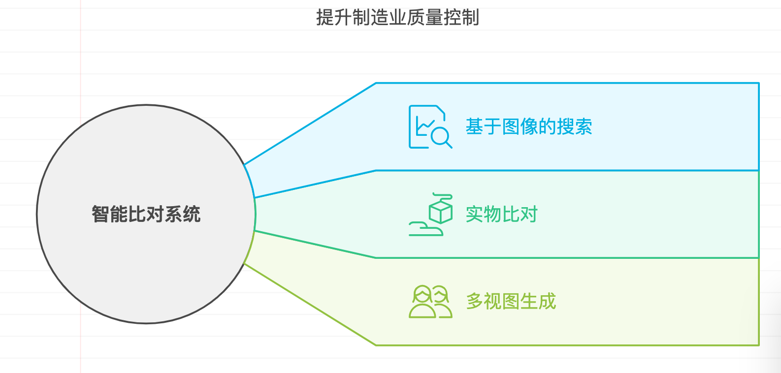 在机械制造与加工领域,设计图纸与实物的比对是确保产品质量的重要环节。然而,传统比对方式耗时长、易出错,严重影响生产效率。针对这一痛点,思通数科推出了一套基于大模型技术的智能比对系统,集成以图搜图、实物比对和多视图生成等功能,为用户带来高效、精准的解决方案。