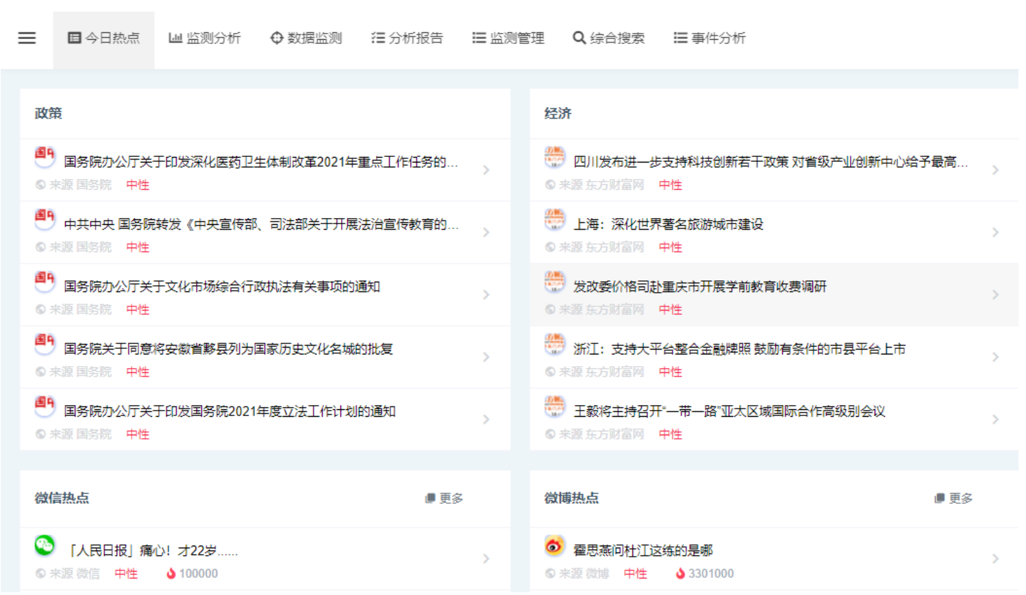 对政府部门和公共机构而言,网络舆情监测分析系统能够帮助其及时掌握网络上对政策、事件、决策等的反应,提前发现舆情风险。通过实时监控和情感分析,及时识别负面情绪的爆发点,有助于制定有效的舆论引导策略,避免舆情危机的升级。