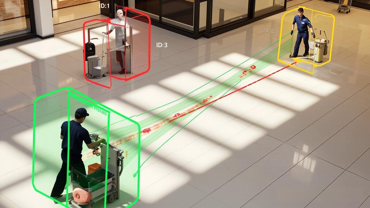 - 在监控画面标注虚拟检测线,统计特定点位(如休息区至垃圾站)的往返次数