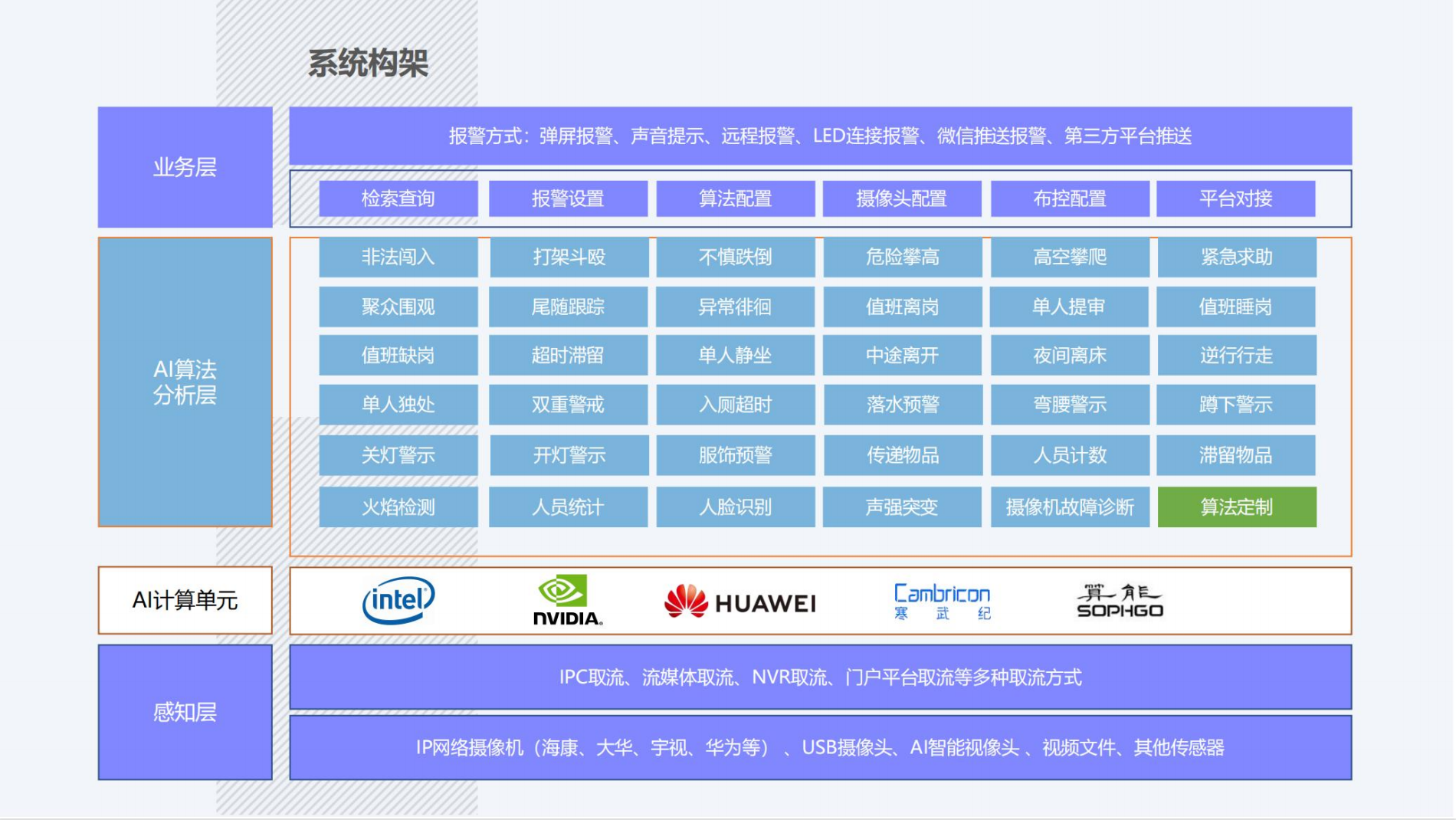 - 多维感知:覆盖周界、出入口、高危区等11大场景,构建无死角安防体系。