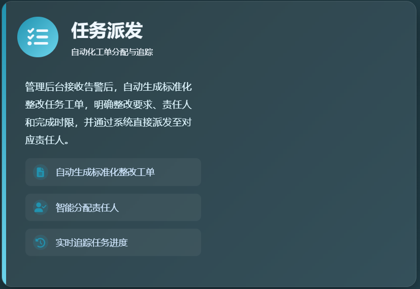 任务派发:后台自动生成整改任务,分配至对应责任人