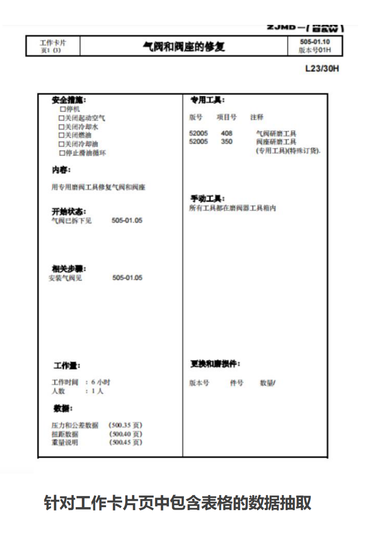 多技术融合解析文档:运用思通数科AI多模态工业图纸全要素解析技术,融合OCR、识别、数模解析等技术,对船舶维修手册中表格、零部件图纸及编号等内容进行解析。