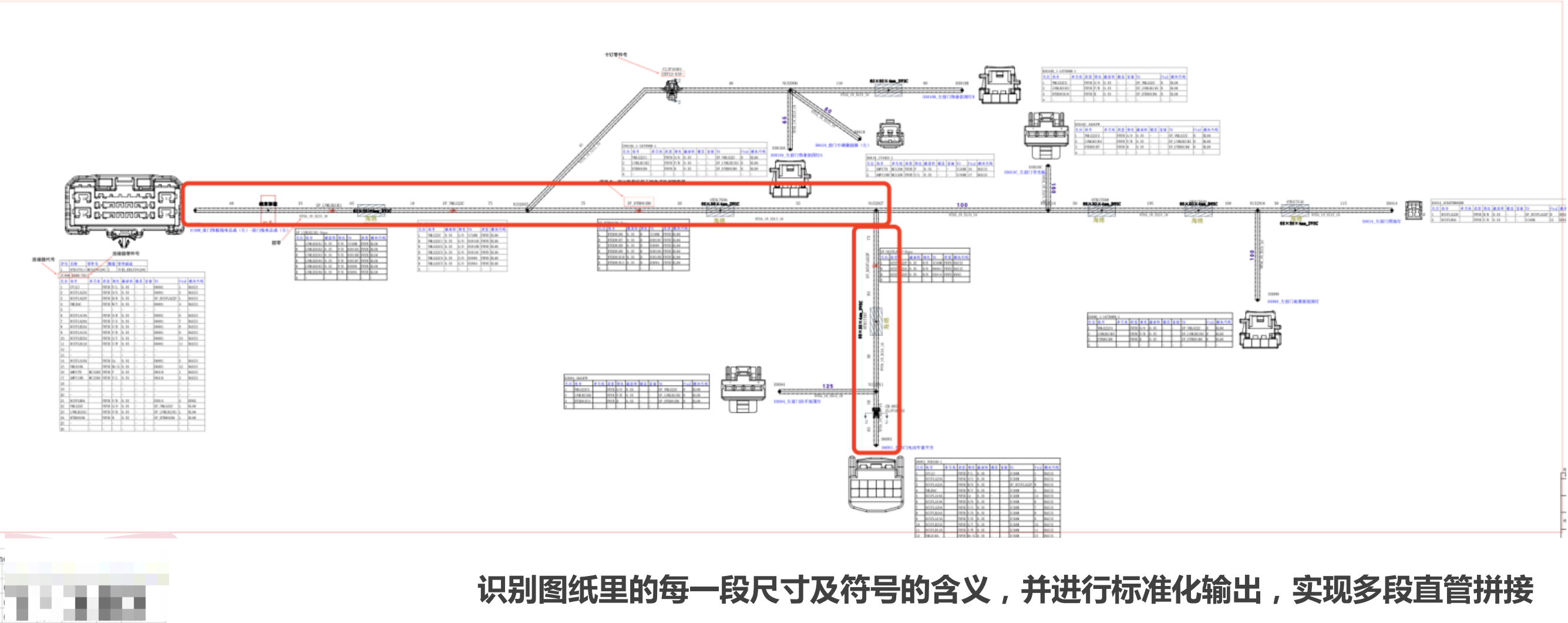 多个部门都有同样的业务场景需求,例如:针对不同格式类型的解析表格并计算管线长度,解决整车厂线束图纸的物料用量统计问题,辅助报价。因设计软件和规范不统一,需大量人工统计物料,耗时且资源投入大。