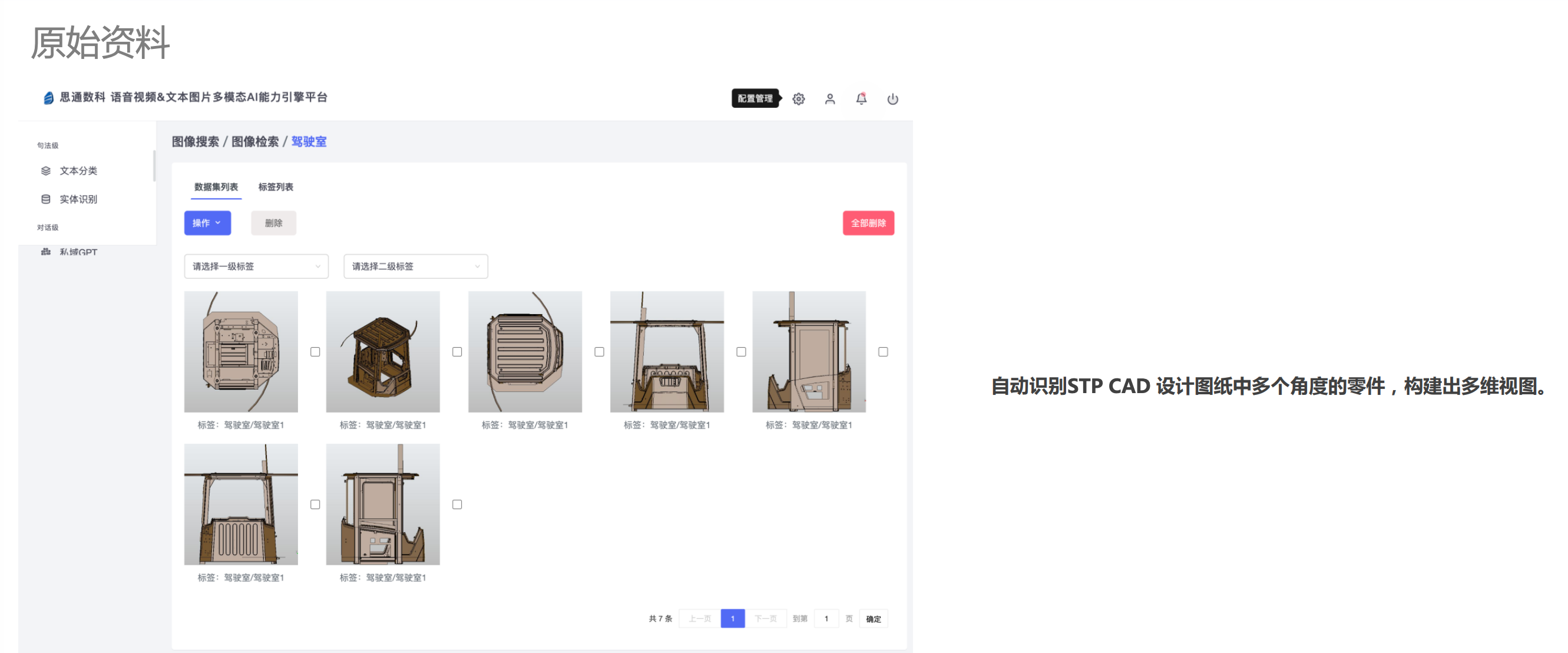1. 多技术融合解析图纸与数模:借助先进的AI多模态技术,帮助深入解析复杂的图纸与数模信息。利用OCR技术精准识别图纸中的文字、尺寸等关键信息,并通过数模解析技术对零部件的三维模型进行分析,为后续的物料号识别及实物比对奠定坚实基础,保障信息获取的全面性与准确性。