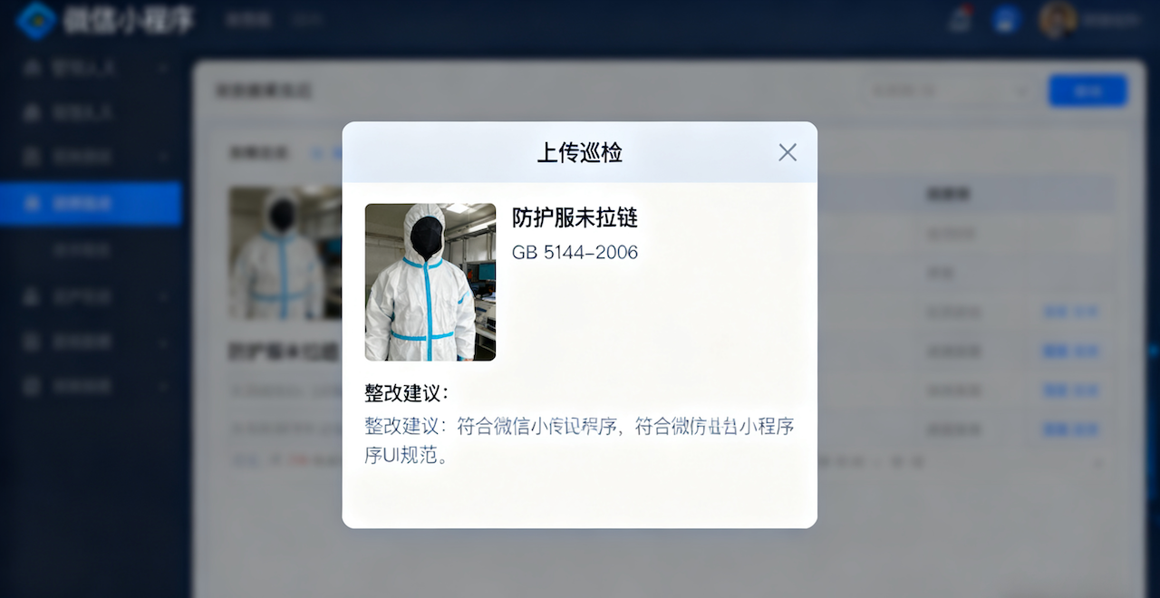 此外,思通数科 AI 卫士支持通过微信小程序快速复盘操作合规性:管理人员上传巡检画面、选择 “人员操作” 类别后,AI 自动输出 “防护装备违规”“监护人离岗” 等隐患结果,附带识别依据(如 “依据 GB 5144-2006,塔吊作业人员需规范穿戴安全帽并系好带子”)及整改建议(如 “立即要求作业人员系好安全帽带,更换专职监护人”),让人员操作合规性管理 “可识别、可追溯、可整改”。