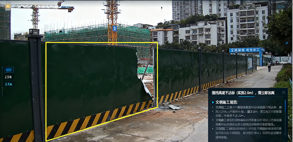 思通数科 AI 卫士依托建筑行业多模态视觉大模型,打造全场景自动化监测方案,彻底打破传统监测局限:针对文明施工场景,AI 通过摄像头实时识别围挡高度(是否≥2.5m)、施工道路硬化情况,检测垃圾是否及时清运、材料是否按规划堆放,若发现围挡破损、道路泥泞等问题,立即生成隐患记录;在基坑监测中,结合机器狗巡检与传感器数据,AI 识别支护结构裂缝、周边堆载是否超标,同步监测积水抽排进度,通过 3D 建模对比基坑变形趋势,提前预警坍塌风险;消防场景下,AI 精准识别灭火器配置数量(按面积核算是否达标)、压力状态,检测消防通道是否被占用、安全出口标识是否清晰,全方位覆盖施工全流程安全风险点。