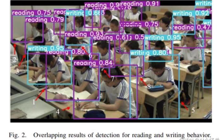 - 全班覆盖,无死角:单台教室顶部摄像头(1080P广角)即可覆盖全部学生,结合YOLO目标检测与OpenPose骨骼关键点识别,系统实时框选每位学生面部与上半身区域。