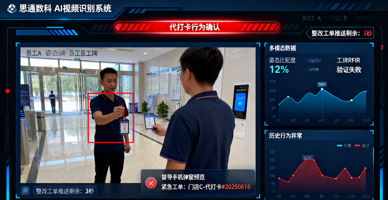 思通数科AI视频识别系统筑起“多层堡垒”:亚裔优化算法+多模态融合(姿态+行为),99.5%精度覆盖遮挡场景;无感考勤+RFID验证,代打卡率<0.5%;实时预警10秒推送整改工单,日志毫秒追溯;本地加密部署,敏感数据不离设备,符合GDPR;工业级测试通过,粉尘高湿下零掉帧。