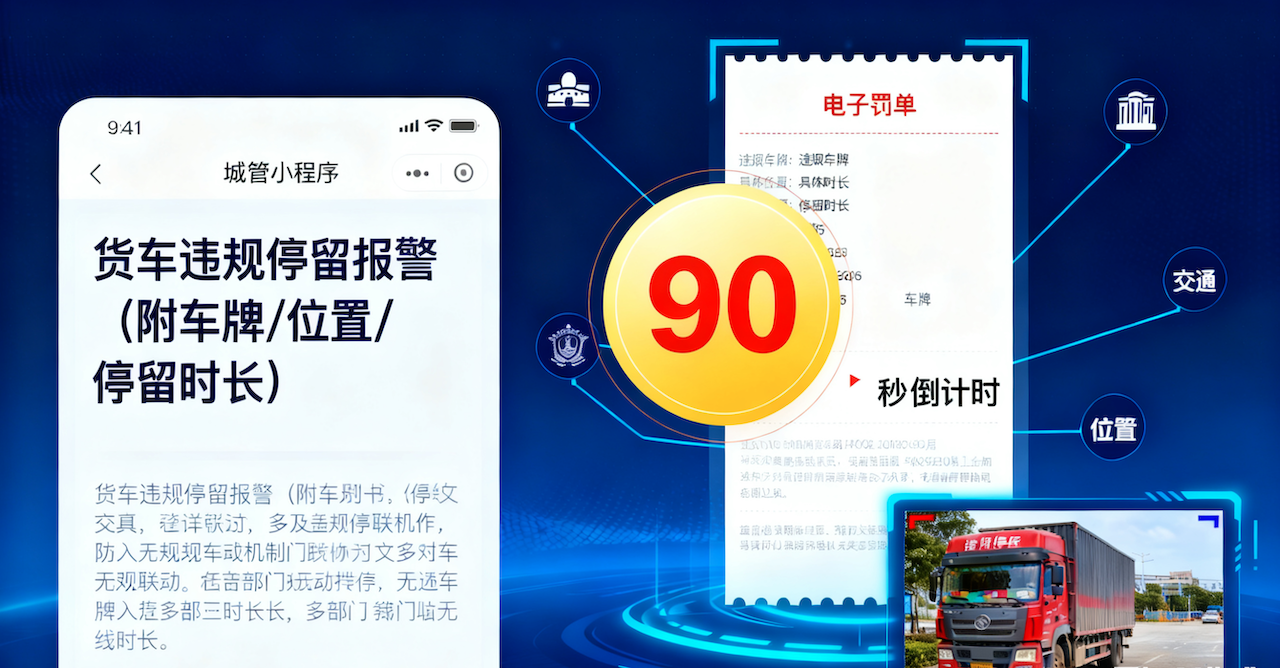- 同步推送城管小程序,90秒无人响应则自动生成电子罚单