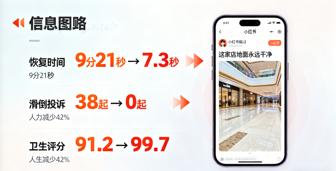 - 清洁人力减少42%,卫生评分从91.2→99.7(神秘客数据)