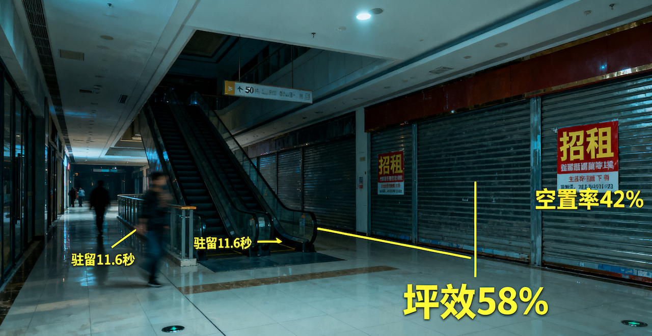 实际场景:西南某省会城市核心商场B1-B2层,总面积4.2万㎡,日均客流3.8万,但负二层长期坪效只有地上的58%,右侧整片商铺常年空置率超40%,西北侧50米通道几乎无人停留超过10秒。