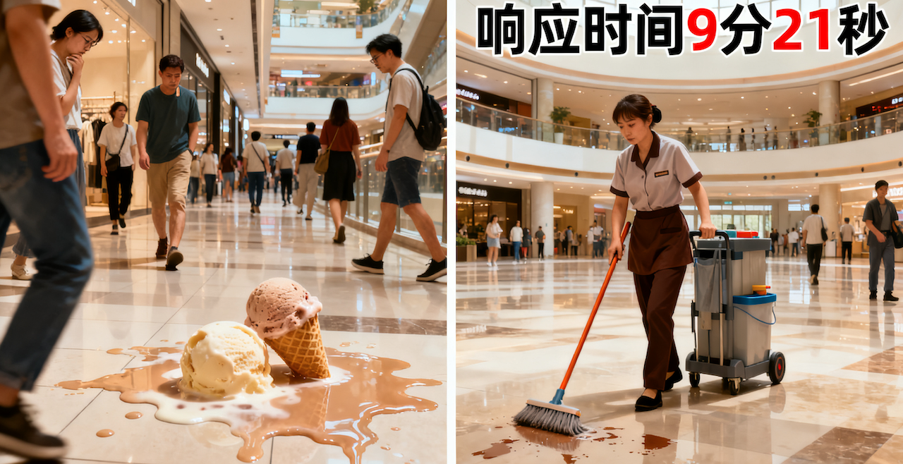 过去:地面水渍和通道被杂物堵塞是顾客投诉和安全隐惠的高发区。店员难以时刻紧盯监控,等问题被发现时,往往为时已晚——轻则顾客投诉,重则可能引发滑倒摔伤等安全事故。