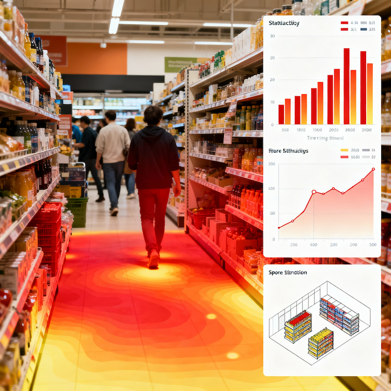 停留时长: 精准记录顾客在不同货架前的停留时间,识别哪些商品吸引了目光,哪些区域形成了犹豫区。