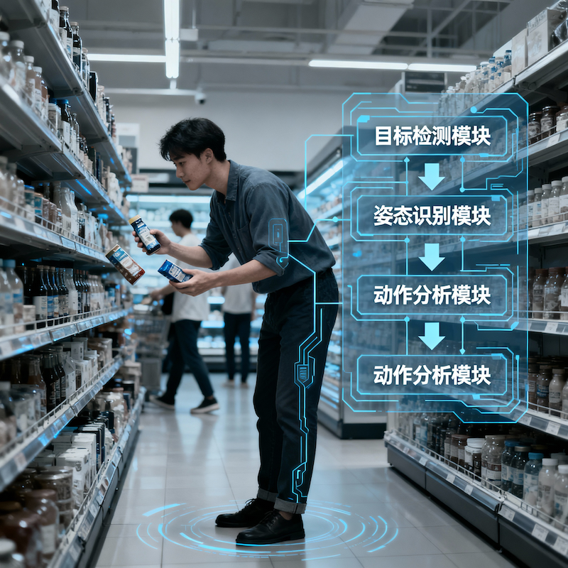 本系统通过目标检测、姿态识别与行为序列建模技术,可以精准捕捉顾客的“潜意识”行为数据: