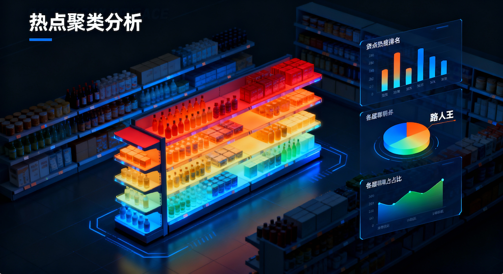 哪个货架热度最高、哪一层最吸引人、哪个 SKU 成为“路人王”