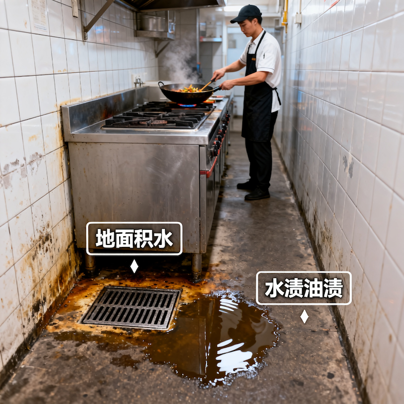 - 清洁与卫生规范: 清洁规范识别:砧板混用、抹布混用(基础版可实现),以及地面积水、水渍油渍识别,确保后厨环境卫生。