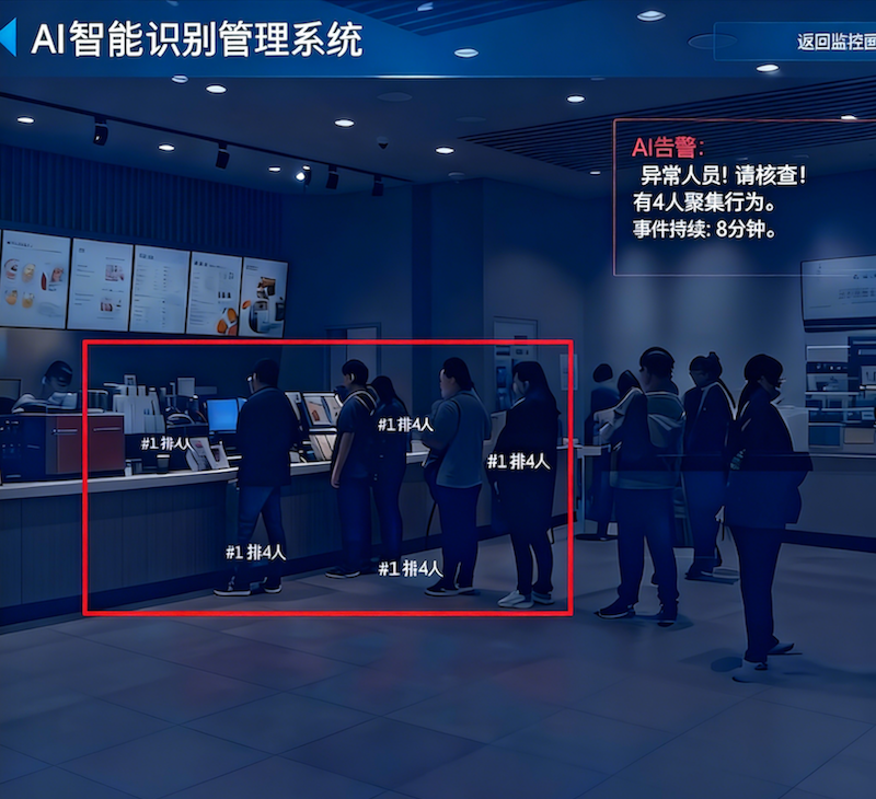 智能告警机制: 一旦发现排队人数超过设定阈值(比如5个人),系统会立马给店长手机发送提醒:“该加人收银了!” 实现了从“事后发现”到“即时干预”的转变。