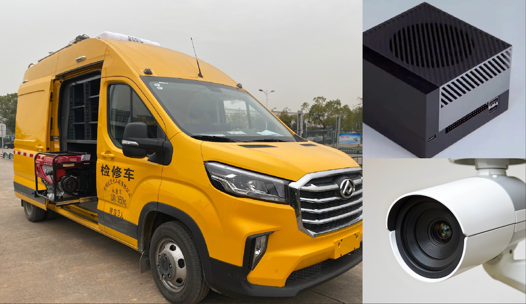 *地面端* 工程车搭载409万像素以上高清摄像头与NVIDIA Jetson AGX Orin边缘计算设备,在移动过程中对电缆沟、配电箱、接地装置等地面设施进行实时监测,快速识别设备异常发热、线缆破损、无关人员靠近等风险,无需人工逐点排查。